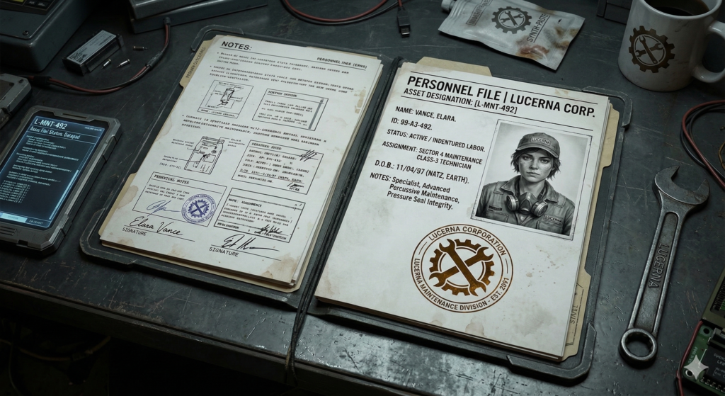 Elara Vance is a veteran mechanic of the Lucerna fiefdom, a reluctant custodian of the Martian life-support grid. She operates on the bleeding edge of structural failure, tasked with holding back the thermodynamic collapse of the colony’s primary systems. She is not a hero of the terraforming epoch; she is a pragmatist bound by gravity, corporate debt, and the relentless decay of mechanical systems.